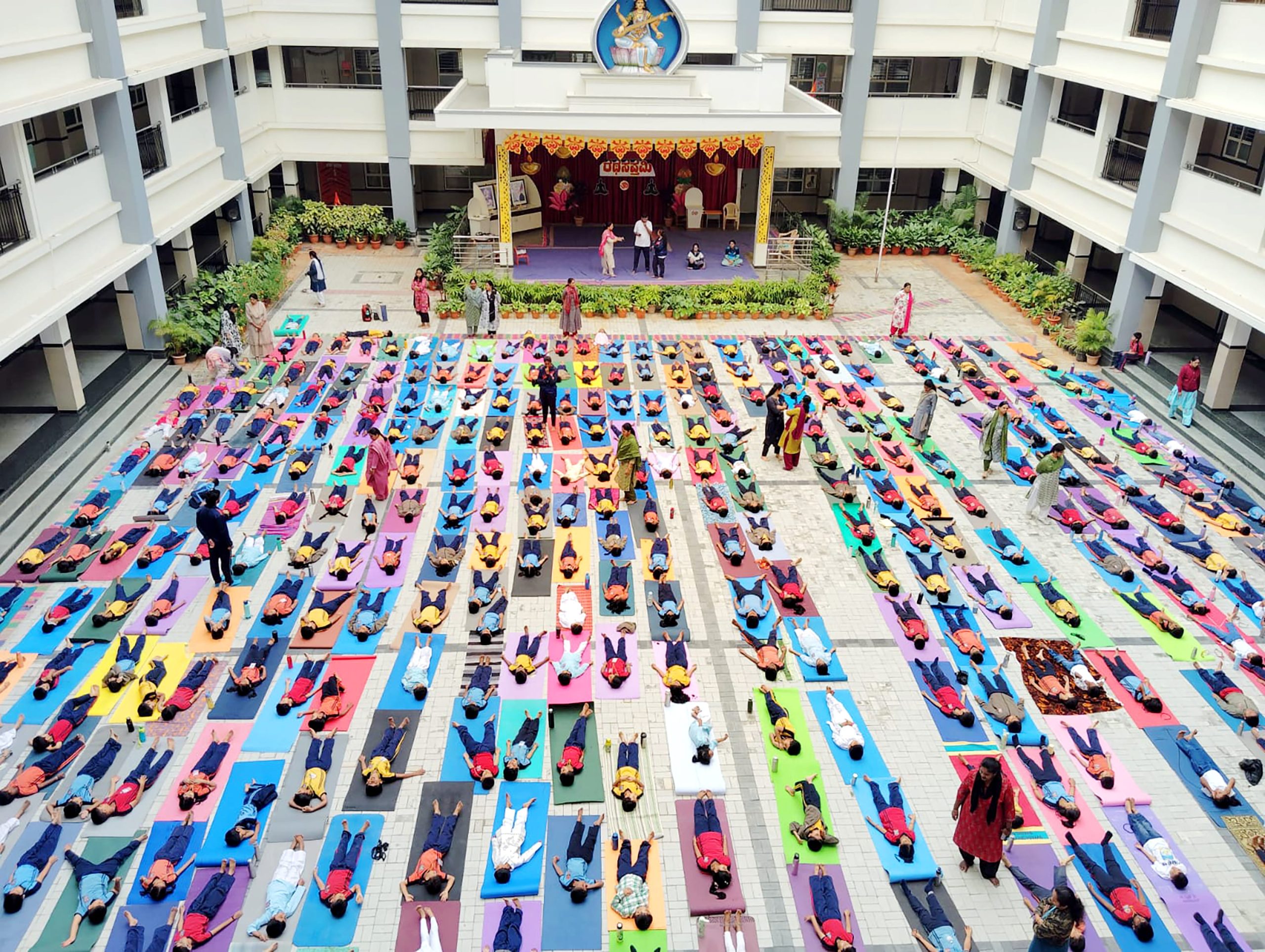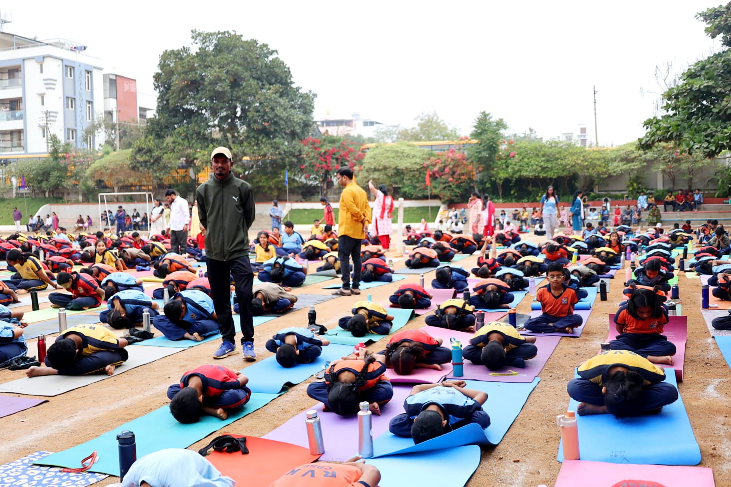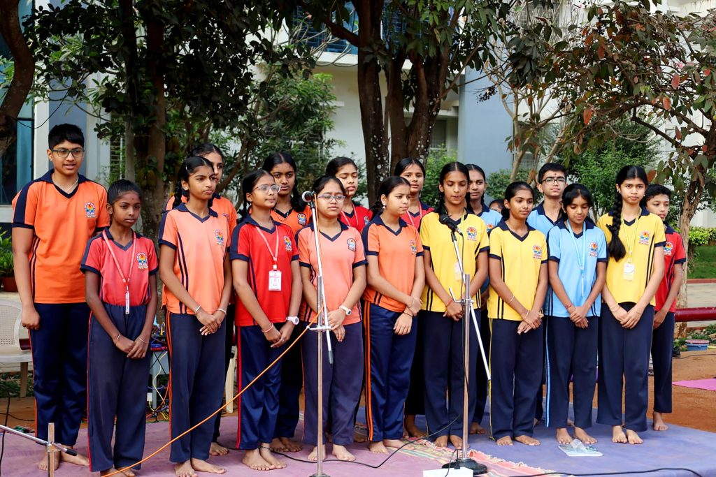 Bengaluru, Jan. 24: Ratha Saptami and National Voters Day were celebrated herein Rashtrotthana Vidya Kendra – Banashankari. The program was graced by the chief guest Sri Dr. Sudhir Deshpande, a renowned yoga researcher and experienced yoga teacher. The students explained the importance of Ratha Saptami and the importance of National Voters' Day celebrated on this day. Pledge was taken as part of National Voters' Day. Yoga expert students demonstrated yoga postures. Then, Yoga teacher Smt. Premalatha read out the Yoga report and said, “Every year, a Suryanamaskar yajna is organized one week before Ratha Saptami. Accordingly, the total number of Suryanamaskar performed by students and parents at home is 3,53,092 and the purpose behind providing yoga education in the surrounding government schools is to build a healthy and sustainable society.” Addressing the program, the chief guest, Sri. Dr. Sudhir Deshpande, said; “Yoga is a tool to balance our bodies and minds. The tasks we do daily depend on the bodies and minds. The sun is the source of energy for all living beings. Vitamin-D, which comes from the sun, is very essential for all living beings and keeping all this scientific background in mind, we celebrate Ratha Saptami every year. We need to incorporate the discipline of the sun in our lives through daily practice. We can only give him a namaskar.” Then the teachers and about 2,500 students performed a mass Surya Namaskar. The program concluded with Shavasana/Yoga Nidra after 108 Surya Namaskars led by the yoga teacher.