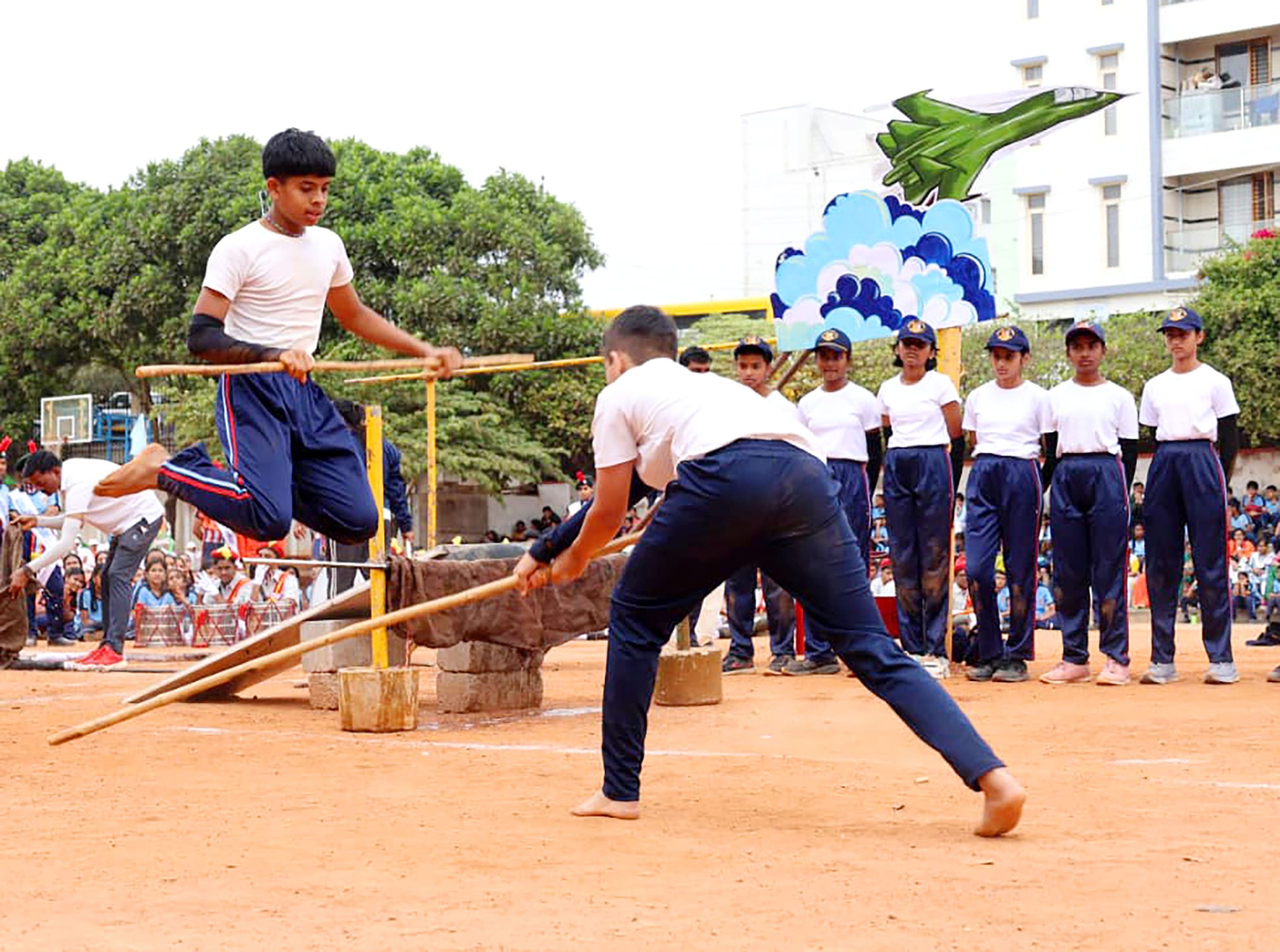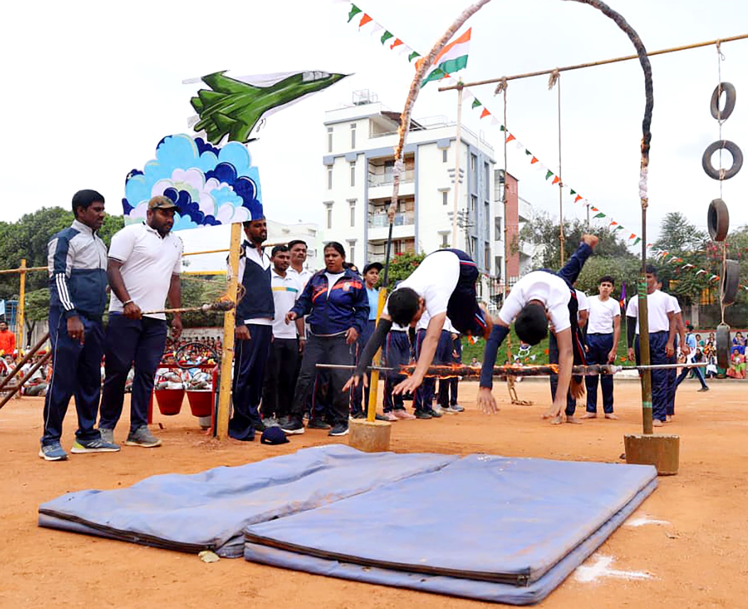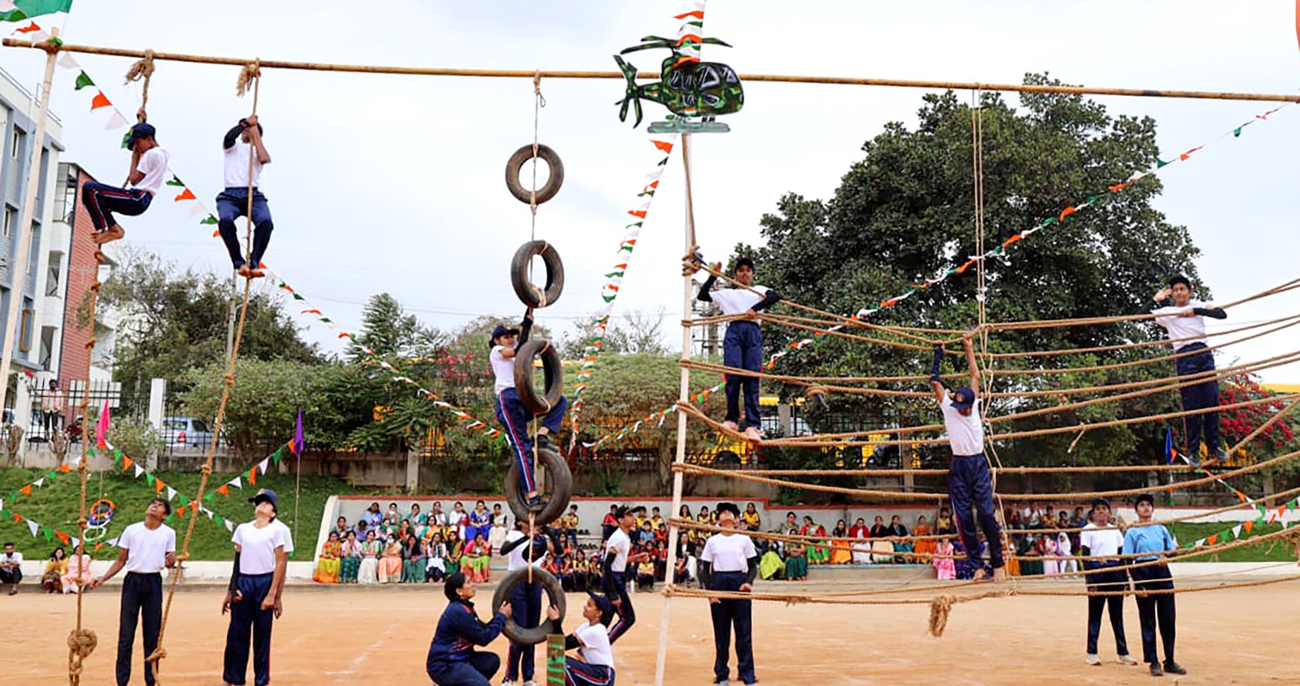 ಕಾರ್ಯಕ್ರಮದ ಭಾಗವಾಗಿ ನಡೆದ ಪಥಸಂಚಲನ, ವಿವಿಧ ಸಾಂಸ್ಕೃತಿಕ ಕಾರ್ಯಕ್ರಮಗಳು, ಕರಾಟೆಯ ಶಕ್ತಿ ಪ್ರದರ್ಶನ ಹಾಗೂ ವಿದ್ಯಾರ್ಥಿಗಳ ವಿವಿಧ ಸಾಹಸ ಪ್ರದರ್ಶನಗಳು ಪ್ರದರ್ಶಿಸಲ್ಪಟ್ಟವು. ಈ ಸಂದರ್ಭದಲ್ಲಿ ಕ್ರೀಡೆಯ ವಿವಿಧ ವಿಭಾಗಗಳಲ್ಲಿ ರಾಷ್ಟ್ರೀಯ ಮಟ್ಟದಲ್ಲಿ ಸಾಧನೆ ಮಾಡಿದ ವಿದ್ಯಾರ್ಥಿಗಳಿಗೆ ಬಹುಮಾನ ಹಾಗೂ ಪ್ರಶಸ್ತಿಗಳನ್ನು ಪ್ರದಾನ ಮಾಡಲಾಯಿತು. ಮುಖ್ಯ ಅತಿಥಿಗಳಾದ ಶ್ರೀಯುತ ಯೋಗೀಶ್ ಪೂವಯ್ಯರವರು ತಮ್ಮ ಭಾಷಣದಲ್ಲಿ ರಾಷ್ಟ್ರಕ್ಕೆ ಬೇಕಾದ ವಿದ್ಯಾರ್ಥಿಗಳನ್ನು ಸಂಸ್ಥೆಯು ತಯಾರು ಮಾಡುತ್ತಿರುವುದು ಸಂತೋಷದ ವಿಷಯವಾಗಿದೆ ಎಂದರು. ಹಾಗೆಯೇ ನಮ್ಮ ಜೀವನವನ್ನು ನಾವೇ ರಕ್ಷಿಸಿಕೊಳ್ಳುವಷ್ಟು ಸಮರ್ಥರಾಗಬೇಕು ಎನ್ನುತ್ತಾ, ಸೈನ್ಯದಲ್ಲಿನ ತಮ್ಮ ವೃತ್ತಿಜೀವನದ ರೋಮಾಂಚನಕಾರಿ ಹಾಗೂ ಪ್ರೇರಣಾದಾಯಕ ಅನುಭವಗಳನ್ನು ವಿದ್ಯಾರ್ಥಿಗಳೊಂದಿಗೆ ಹಂಚಿಕೊಂಡು, ಶಿಸ್ತು, ದೇಶಭಕ್ತಿ ಮತ್ತು ಕರ್ತವ್ಯನಿಷ್ಠೆಯ ಮಹತ್ವವನ್ನು ವಿವರಿಸಿದರು.