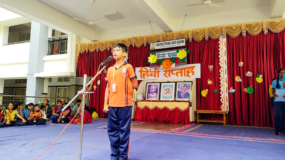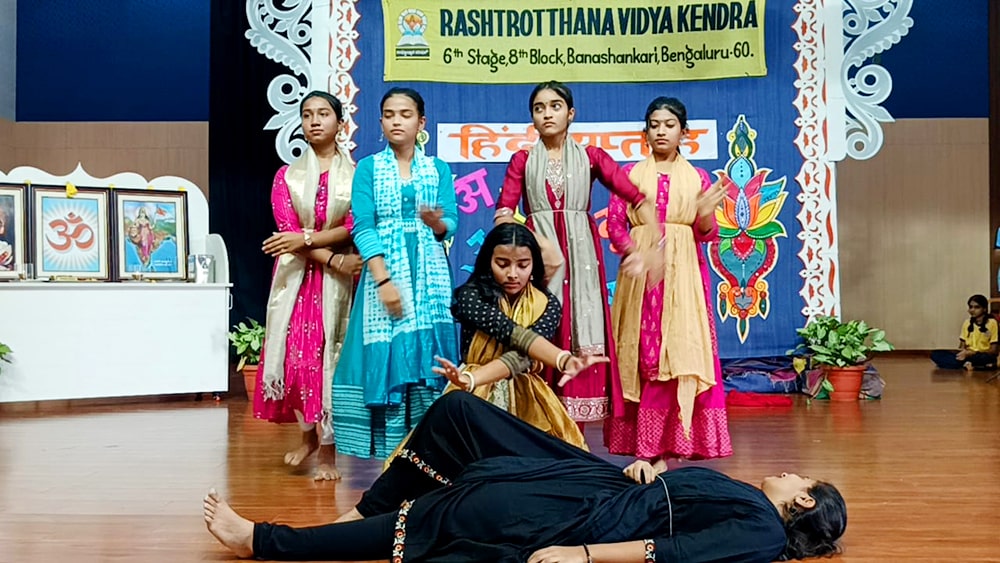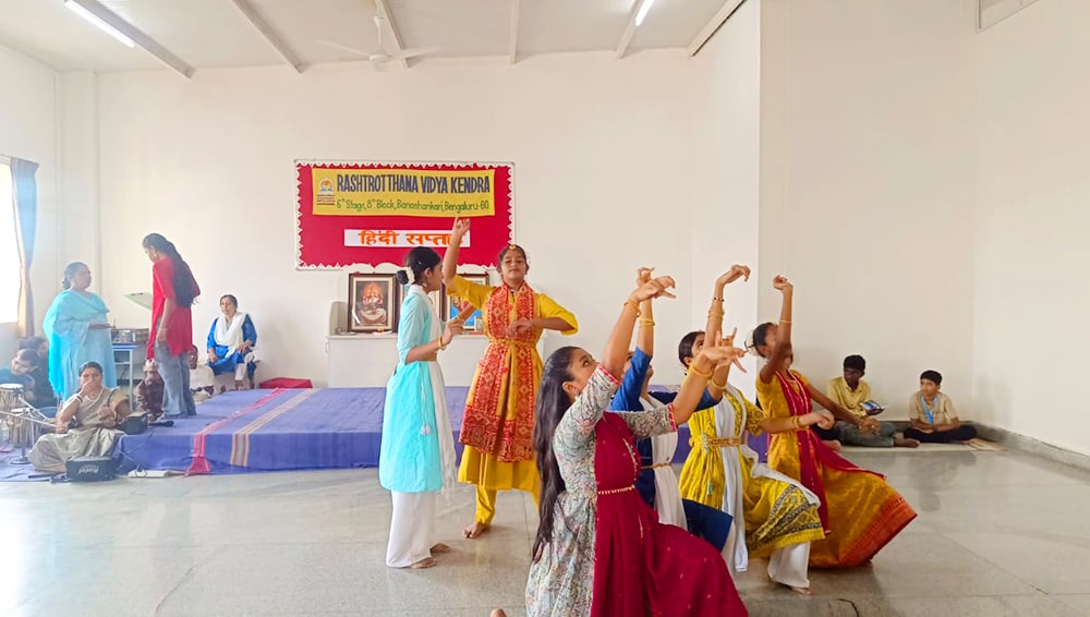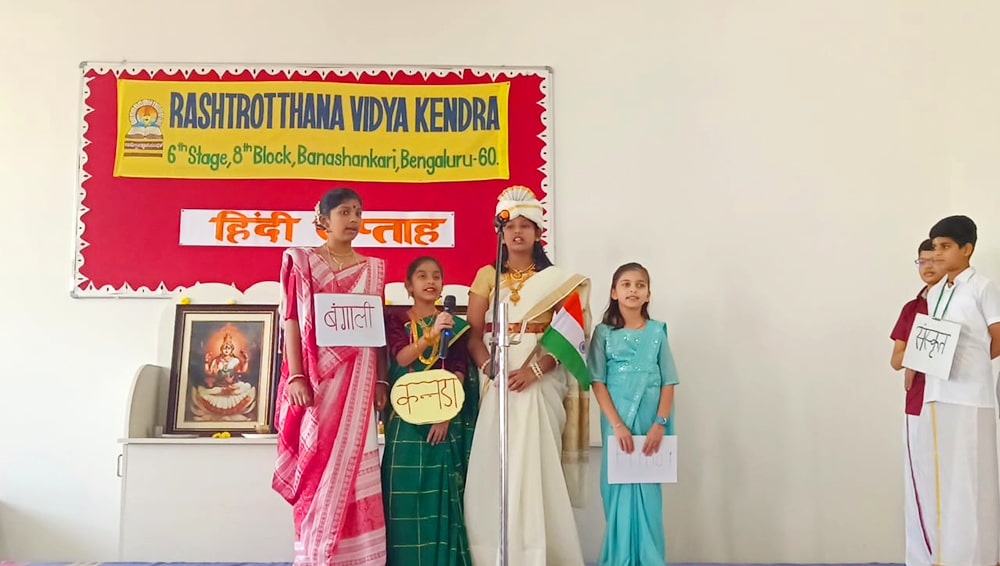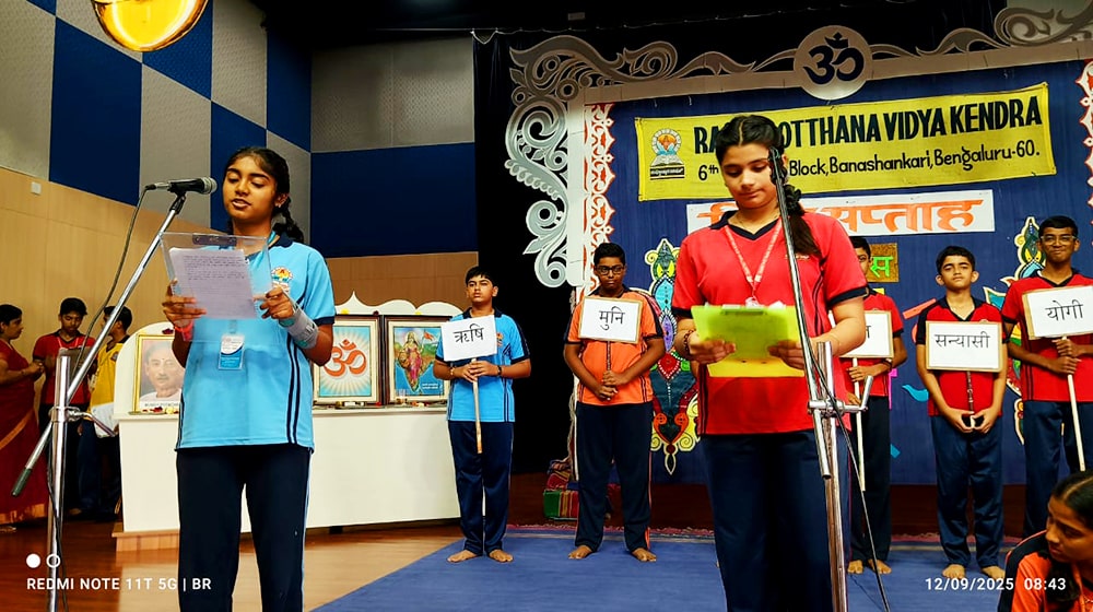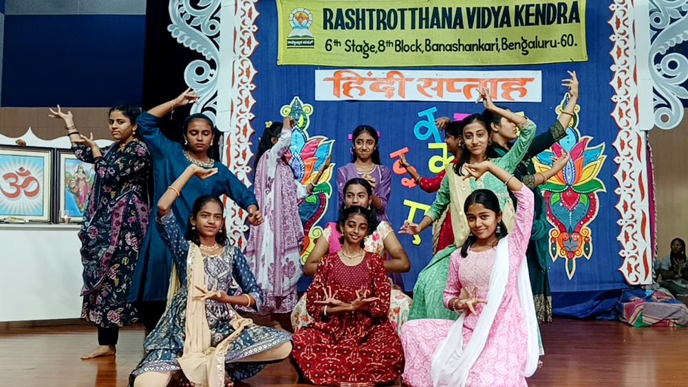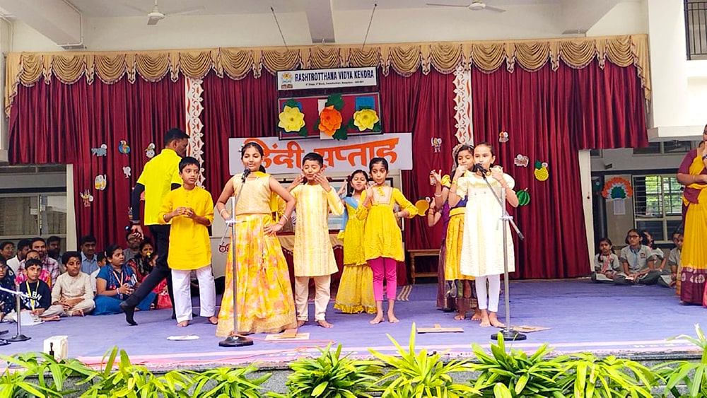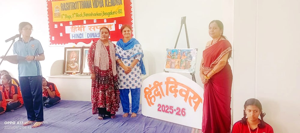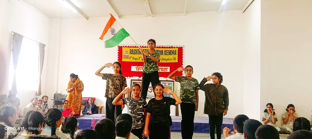 Bengaluru, Septt. 12: Hindi Day was celebrated herein Rashtrotthana Vidya Kendra – Banashankari. The students explained the reason for celebrating Hindi Day and the importance of Hindi language. In the background of Hindi Day, the school has been celebrating Hindi Week since last week. Every day, students showed their love for Hindi language by performing songs, dances and plays that spread the importance of Hindi language.