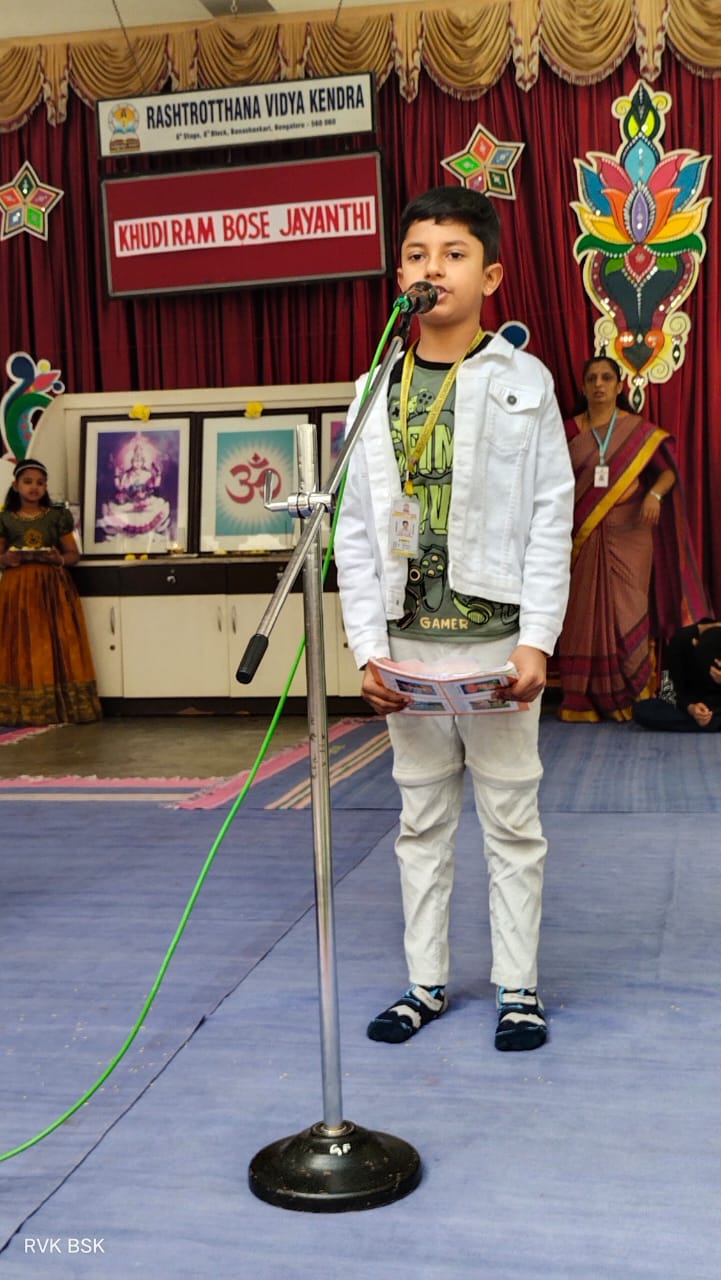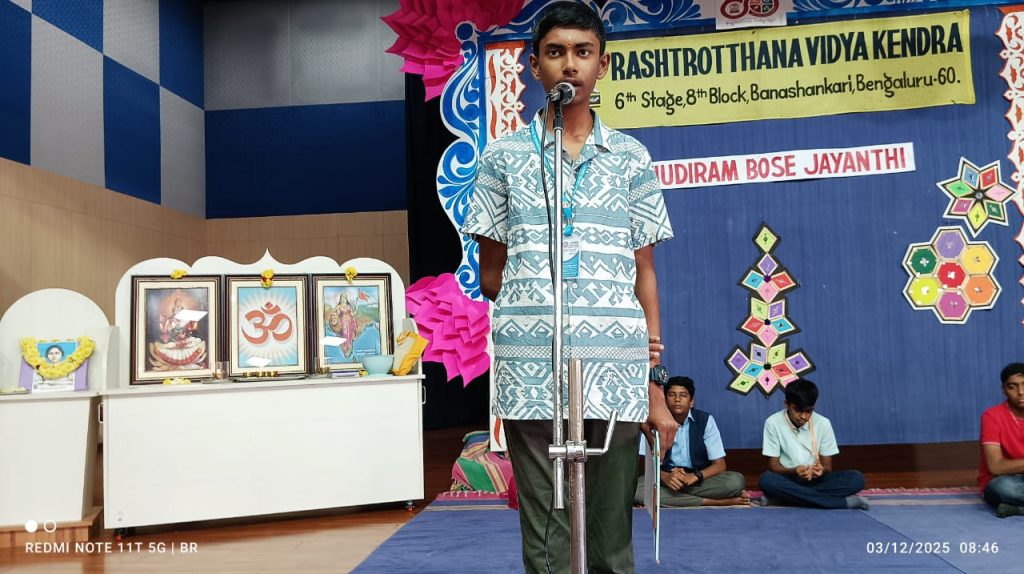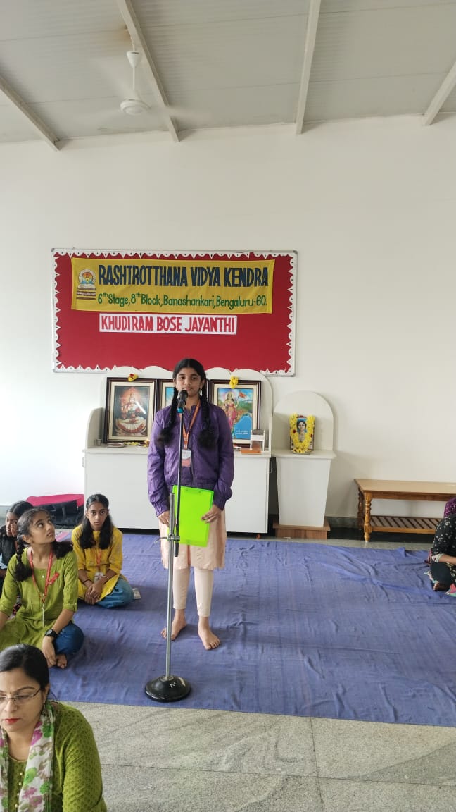 Bengaluru, Dec. 3: The birth anniversary of India’s greatest freedom fighter Khudiram Bose was celebrated herein Rashtrotthana Vidya Kendra – Banashankari.The students narrated a brief biography of Khudiram Bose in a captivating manner. The students explained his courage in taking a step towards freedom struggle in his childhood, his fight against the British at a young age, and the great sacrifice he made for the country.