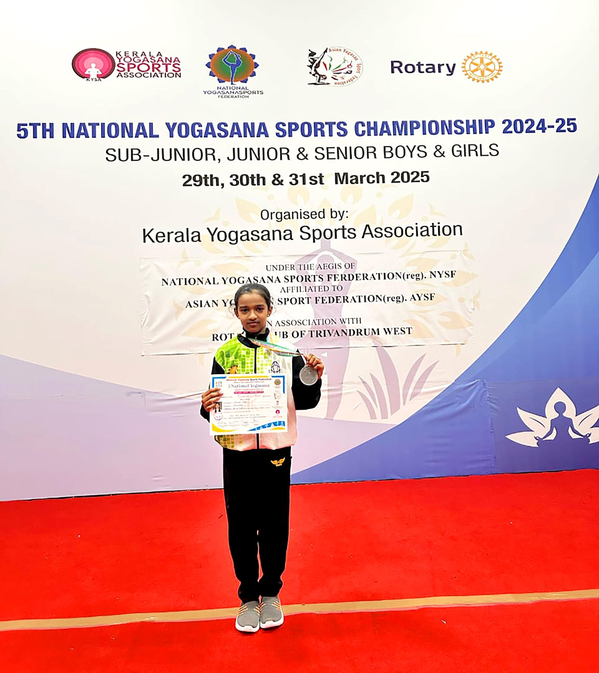Bengaluru, Apr. 3: Shravani from 4th std studying in Rashtrotthana Vidya Kendra – Banashankari has won a silver medal in the 5th National Level Yogasana Competition 2024-25 held in Thiruvananthapuram, Kerala. Her achievement is an inspiration to other students and a proud moment for the school. Hearty Congratulations from Rashtrotthana Parivar.