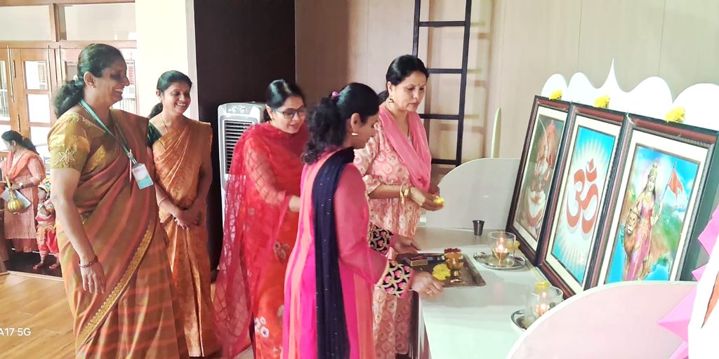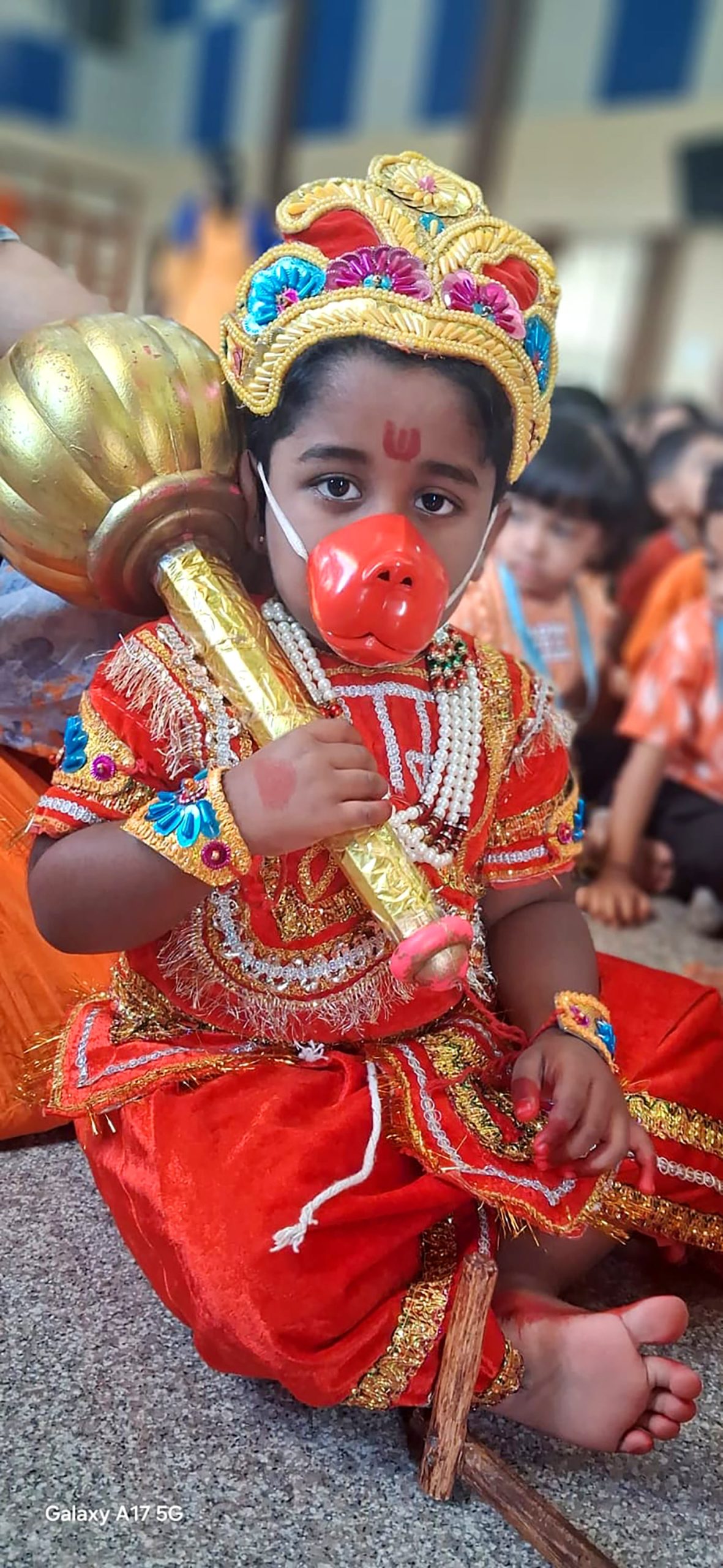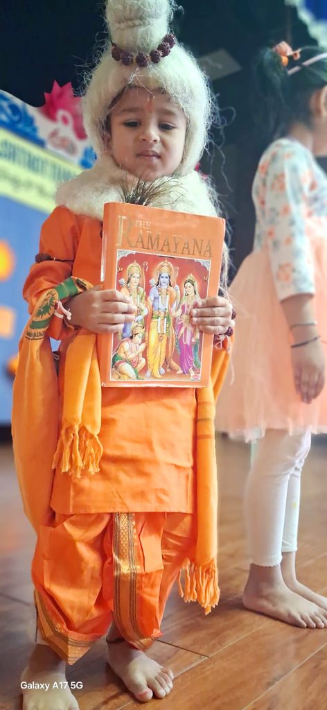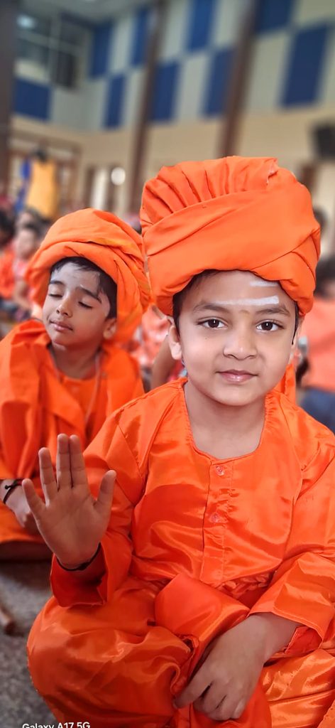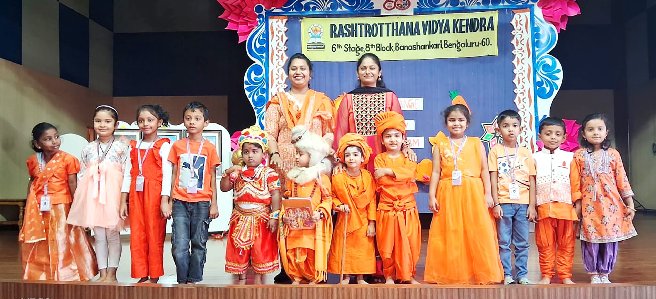 Bengaluru, Jan. 22: Orange Day was organised for Gokulam students herein Rashtrotthana Vidya Kendra – Banashankari. All the children attended school wearing orange girls. All the teachers decorated the activity room with orange for the children. Pre-KG children came dressed in costumes of Swami Vivekananda, Valmiki, Hanuman and Siddaganga Sri Shivakumara Swamy. UKG children talked about them. LKG children conducted a quiz program.