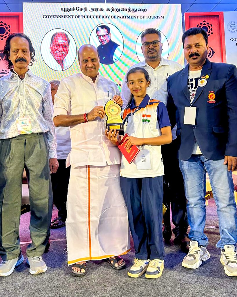 Bengaluru, Jan.: Shravani, a student of Rashtrotthana Vidya Kendra – Banashankari, has made the school proud by participating in the 31st International Yogasana Competition organized by the Pondicherry Government and winning the Bronze Medal (Third Place). Shravani was presented with the prize by Sri K. Lakshminarayanan, Hon’ble Tourism Minister of Pondicherry, during the 31st International Yoga Festival held in Pondicherry.