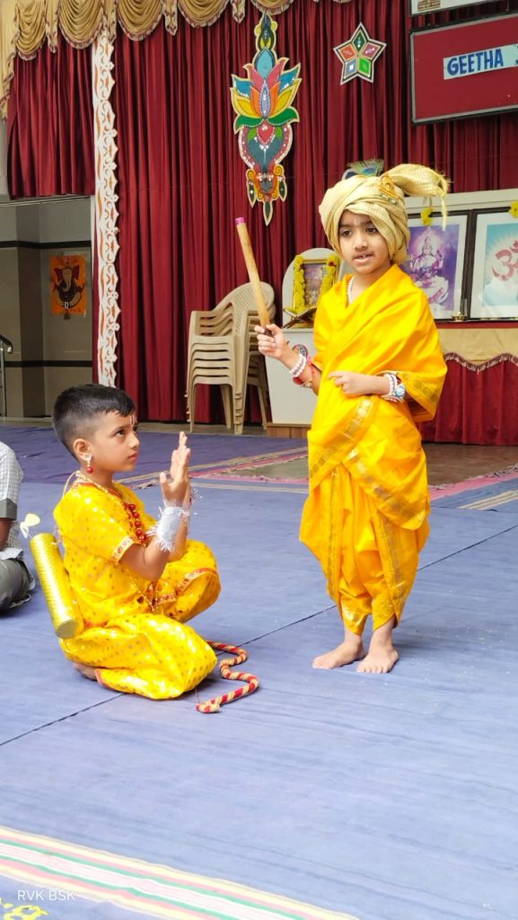 Bengaluru, Dec. 1: Gita Jayanti was celebrated herein Rashtrotthana Vidya Kendra – Banashankari. The students explained in detail the purpose and background of celebrating Gita Jayanti, saying that this day marks the birth of the Hindu holy book, Bhagavad Gita. That is, Gita Jayanti marks the day when Lord Krishna preached the Gita to Arjuna.