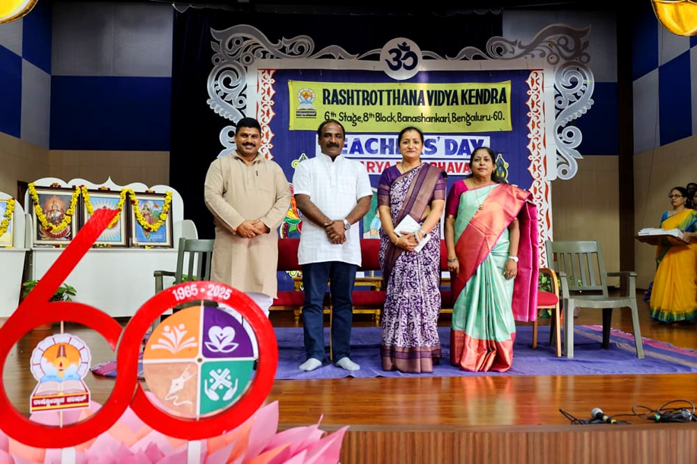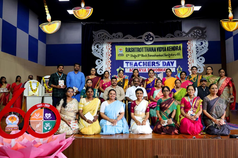 ಬೆಂಗಳೂರು, ಸೆ. 5: ರಾಷ್ಟ್ರೋತ್ಥಾನ ವಿದ್ಯಾಕೇಂದ್ರ – ಬನಶಂಕರಿಯಲ್ಲಿ ಶಿಕ್ಷಕರ ದಿನಾಚರಣೆ ಕಾರ್ಯಕ್ರಮವನ್ನು ಆಯೋಜಿಸಲಾಗಿತ್ತು. 10ನೇ ತರಗತಿಯ ವಿದ್ಯಾರ್ಥಿಗಳು ಬಹಳ ಸುಂದರವಾಗಿ ಕಾರ್ಯಕ್ರಮವನ್ನು ನಡೆಸಿಕೊಟ್ಟರು. ಡಾ. ಸರ್ವಪಲ್ಲಿ ರಾಧಾಕೃಷ್ಣನ್ ಅವರು ಶಿಕ್ಷಣ ಕ್ಷೇತ್ರಕ್ಕೆ ನೀಡಿರುವ ಕೊಡುಗೆಯನ್ನು ಪರಿಗಣಿಸಿ ಇವರ ಜನ್ಮದಿನವನ್ನು ಶಿಕ್ಷಕರ ದಿನಾಚರಣೆಯನ್ನಾಗಿ ಆಚರಿಸಲಾಗುತ್ತದೆ ಎಂದು ವಿದ್ಯಾರ್ಥಿಗಳು ಶಿಕ್ಷಕರ ದಿನಾಚರಣೆಯನ್ನು ಆಚರಿಸುವ ಮಹತ್ವವನ್ನು ತಿಳಿಸಿದರು. ನಂತರ ವಿದ್ಯಾರ್ಥಿಗಳು ಸಂಗೀತ, ನೃತ್ಯ, ನಾಟಕಗಳ ಮೂಲಕ ಶಿಕ್ಷಕರನ್ನು ರಂಜಿಸಿದರು. ನಂತರ ಹತ್ತನೇ ತರಗತಿಯ ವಿದ್ಯಾರ್ಥಿಗಳು ಶಿಕ್ಷಕರ ಪಾತ್ರವನ್ನು ನಿರ್ವಹಿಸಿ ಅವರ ಸ್ಥಾನದಲ್ಲಿ ಕಿರಿಯ ಮಕ್ಕಳಿಗೆ ಆ ದಿನ ಪಾಠವನ್ನು ಮಾಡಿದರು. ನಂತರ ಬನಶಂಕರಿ ಮತ್ತು ಸೋಮನಹಳ್ಳಿ ಶಾಲೆಯ ಶಿಕ್ಷಕರಿಗಾಗಿ ವಿಶೇಷವಾಗಿ ಆಯೋಜಿಸಲಾಗಿದ್ದ ಕಾರ್ಯಕ್ರಮಕ್ಕೆ ಮುಖ್ಯ ಅತಿಥಿಗಳಾಗಿ ನಿಟ್ಟೆ ಮೀನಾಕ್ಷಿ ಕಾಲೇಜಿನಲ್ಲಿ ಪ್ರೊಫೆಸರ್ ಮತ್ತು ಸಮಾಜ ಸೇವಕರು ಆಗಿರುವ ಶ್ರೀಯುತ ಡಾ. ಕರುಣಾಕರ ರೈ ರವರು ಆಗಮಿಸಿದ್ದರು. ಪ್ರತಿಯೊಬ್ಬ ಶಿಕ್ಷಕರು ಹಾಗೂ ವಿದ್ಯಾರ್ಥಿಗಳು ತಮ್ಮದೇ ಆಗಿರುವ ಭಿನ್ನ ವ್ಯಕ್ತಿತ್ವವನ್ನು, ವಿಶೇಷತೆಯನ್ನು ಹೊಂದಿರುತ್ತಾರೆ. ಮುಂದಿನ ದಿನಗಳಲ್ಲಿ ಯಾವುದೇ ತಂತ್ರಜ್ಞಾನ ಶಿಕ್ಷಕರ ಸ್ಥಾನವನ್ನು ಕಸಿದುಕೊಳ್ಳಲು ಸಾಧ್ಯವಿಲ್ಲ ಎಂಬುದನ್ನು ತಿಳಿಸುತ್ತಾ, ತಮ್ಮ ಜೀವನದಲ್ಲಿ ನಡೆದ ಒಂದೆರಡು ಘಟನೆಗಳನ್ನು ಉಲ್ಲೇಖಿಸಿ ಶಿಕ್ಷಕರ ಮಹತ್ವವನ್ನು ತಿಳಿಸಿದರು. ಶಾಲೆಯ ಕರೆಸ್ಪಾಂಡೆಂಟ್ ಶ್ರೀ ವಸಂತ ಕುಮಾರ ಅವರು ಉಪಸ್ಥಿತರಿದ್ದು ಸ್ವಸ್ಥ-ಸುಸ್ಥಿರ ಸಮಾಜ ನಿರ್ಮಾಣದಲ್ಲಿ ಶಿಕ್ಷಕರ ಕೊಡುಗೆಯನ್ನು, ತ್ಯಾಗವನ್ನು ಶ್ಲಾಘಿಸಿದರು. ಹಾಡು, ನೃತ್ಯ, ನಾಟಕ ಮುಂತಾದ ಸಾಂಸ್ಕೃತಿಕ ಕಾರ್ಯಕ್ರಮಗಳ ಮೂಲಕ ಅನೇಕ ಶಿಕ್ಷಕರು ತಮ್ಮಲ್ಲಿರುವ ಸುಪ್ತ ಪ್ರತಿಭೆಗಳನ್ನು ಪ್ರದರ್ಶಿಸಿದರು.mಶ್ರೀಮತಿ ನಂದ ಅವರು ಶಿಕ್ಷಕರಿಗೆ ಪ್ರತಿಜ್ಞಾವಿಧಿಯನ್ನು ಬೋಧಿಸಿದರು. ಹಾಗೆ ಮುಖ್ಯ ಅತಿಥಿಗಳು ಪುಸ್ತಕವನ್ನು ನೀಡುವ ಮೂಲಕ ಎಲ್ಲಾ ಶಿಕ್ಷಕರನ್ನು ಗೌರವಿಸಿದರು. ಸಂಸ್ಥೆಯಲ್ಲಿ 10 ವರ್ಷಗಳ ಕಾಲ ದುಡಿದು, ತಮ್ಮ ಅಮೂಲ್ಯ ಸೇವೆಯನ್ನು ಸಲ್ಲಿಸಿದ ಶಿಕ್ಷಕರನ್ನು ವಿಶೇಷವಾಗಿ ಗೌರವಿಸಲಾಯಿತು. ಆಯ್ದ ಕೆಲವು ಶಿಕ್ಷಕರು ತಮ್ಮ ವೃತ್ತಿ ಜೀವನದ ಅನುಭವವನ್ನು ಹಂಚಿಕೊಂಡರು.
